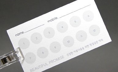 홍보용, 쿠폰용으로 많이 사용되는 용지로 저렴한 가격에 대량으로 제작이 가능하며, 스탬프를 찍거나 볼펜, 레인펜 사용이 가능합니다. 가장 보편적으로 많이 사용되는 용지입니다.
