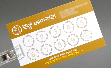 다양한 고급지의 질감과 특징을 살린 특색있는 쿠폰으로 제작이 가능하며, 스탬프를 찍거나 볼펜, 레인펜 사용이 가능합니다.